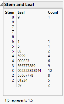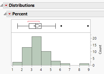 Proceed as in the Histogram tutorial to get the following JMP output: